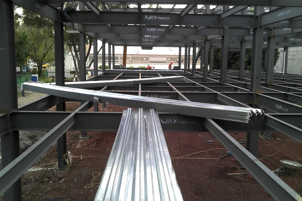El losacero es una lámina acanalada galvanizada que funciona como cimbra permanente para sistemas de entrepiso metálico o losas compuestas.
